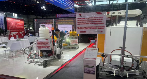 该系统通过地下碳纤维发热电缆主动除冰,避免化学融雪剂对土壤和桥梁的侵蚀,目前在湖北G347国道酒壶坪段等场景中仍稳定运行。智能压实机、摊铺机等设备实现毫米级精度控制,助力“双碳”目标,成为交通技术展的亮点。